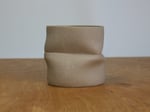 I draw lines and patterns into the clay when it is a flat slab. Once its made into a cylinder I alter the vessel through compression and the markings then affect and influence the final form.